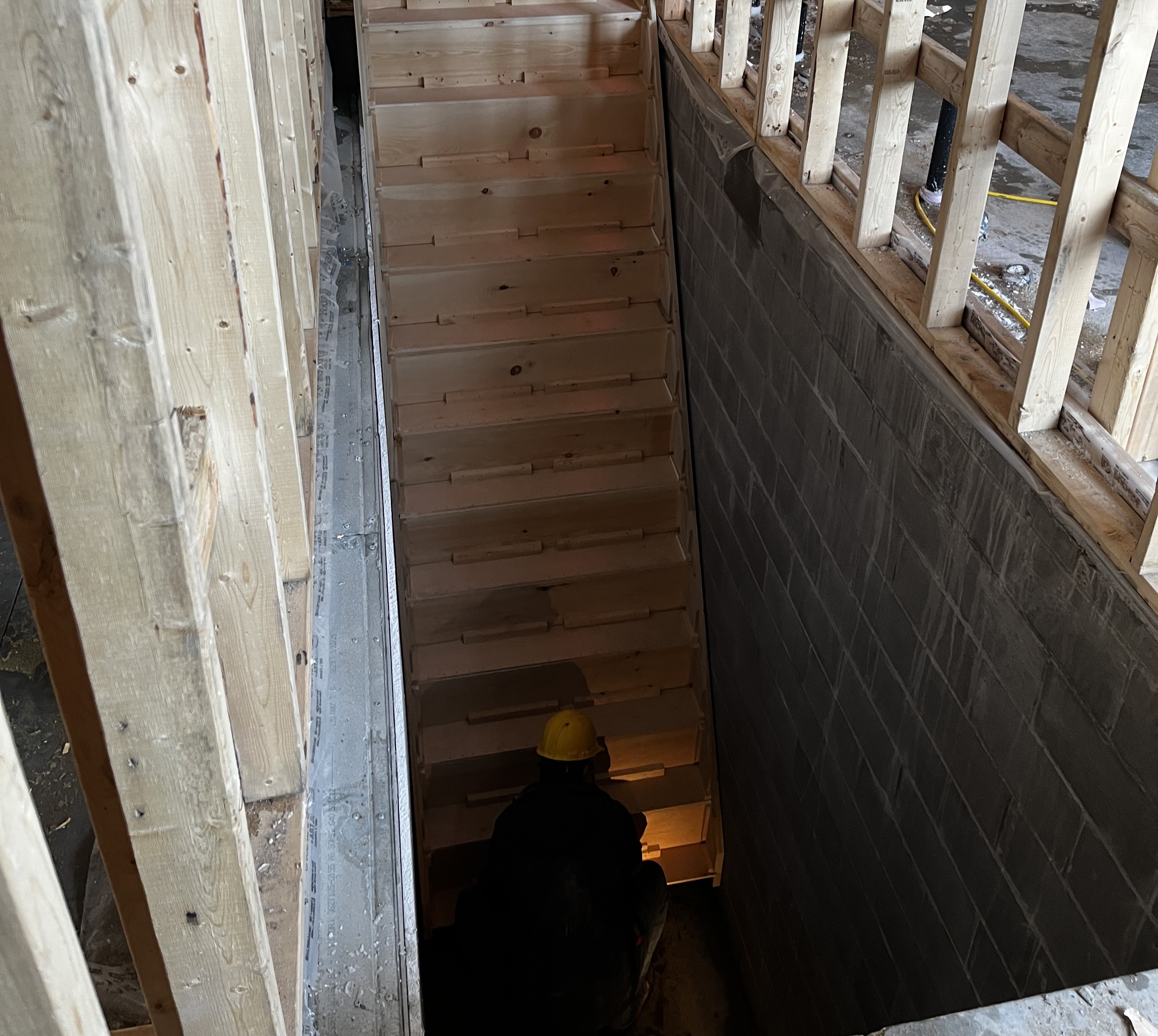 The foundation has been sealed, and backfilling is underway. Next week, masonry work begins for the stairway!